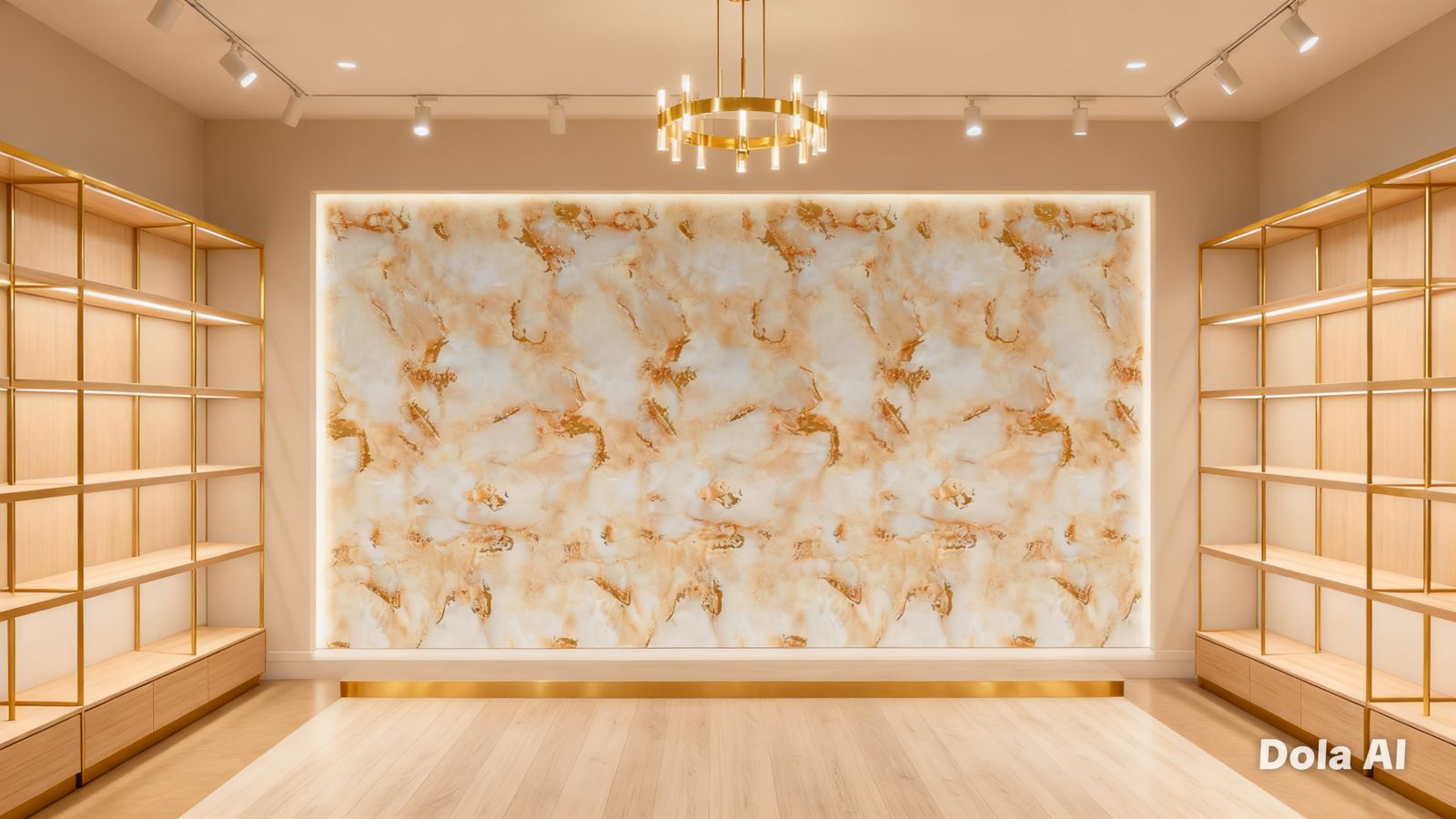 El modelo Onyx Beige Gold presenta una base en tonos beige claro y marfil, con vetas suaves en dorado y ámbar, logrando un acabado tipo mármol natural que transmite calidez, elegancia y armonía.