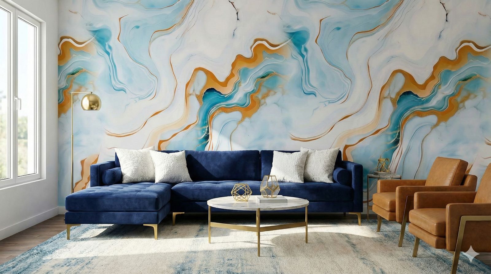 • Diseño: Mármol abstracto aqua con vetas doradas