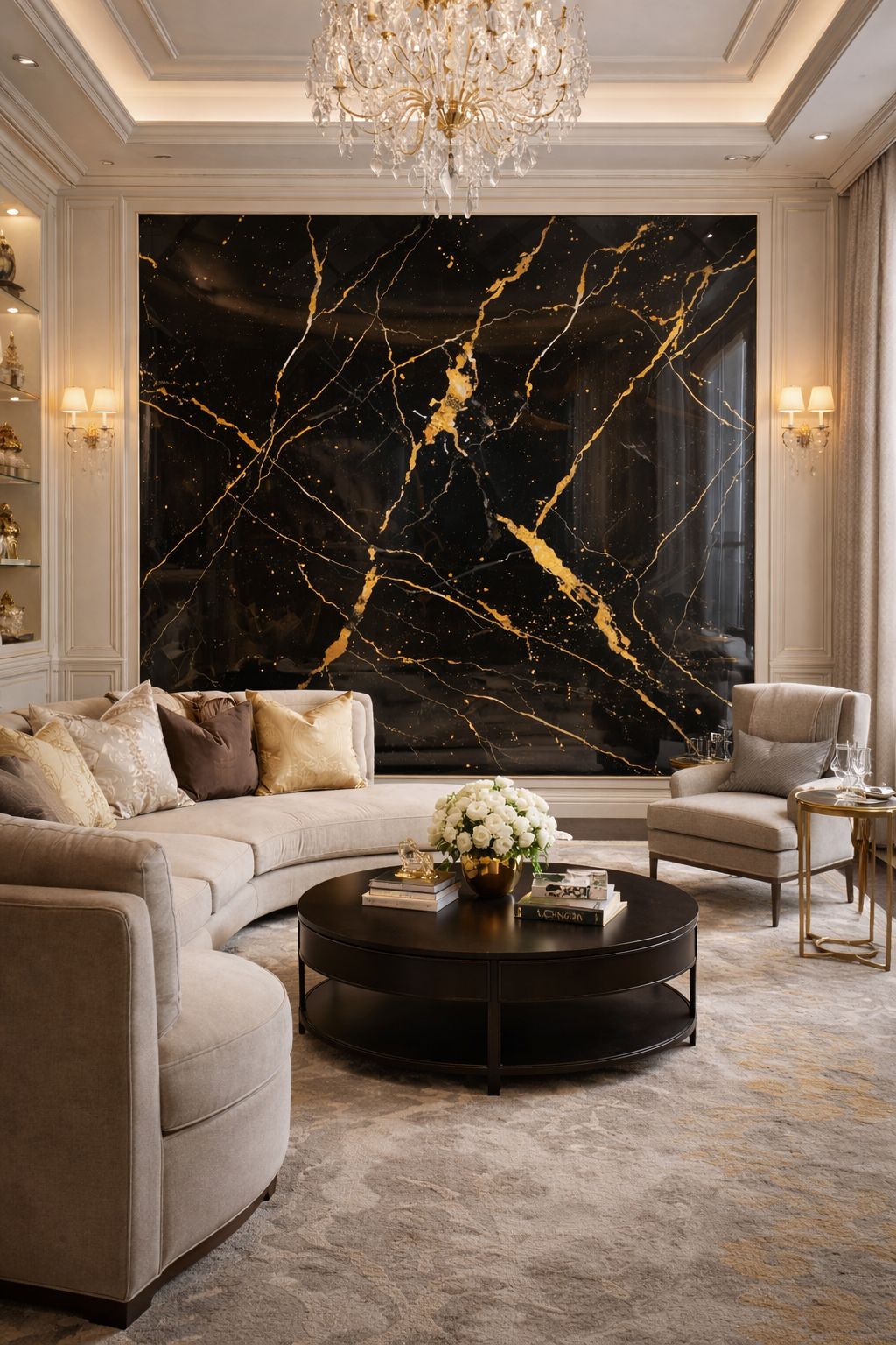 La Black Gold Luxe combina una base negra profunda con vetas doradas intensas que crean un efecto sofisticado, elegante y de alto impacto visual.